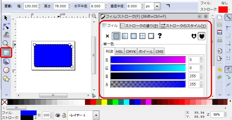 フィルとストロークの色だけでボタンを作るので、ペンツールでも矩形ツールでもOKです。