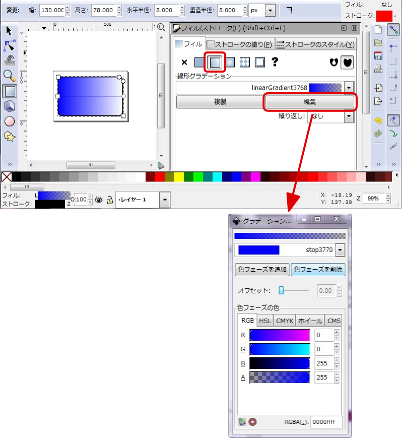 2.フィルの線形グラデーションを選ぶと下のようになります。