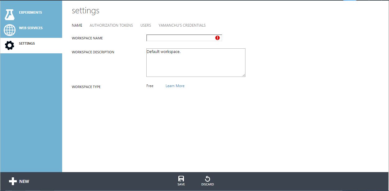 Settingsにはユーザー情報が記載されていました。右のビューのWorkSpaceには実際にはユーザー名が入っていました。