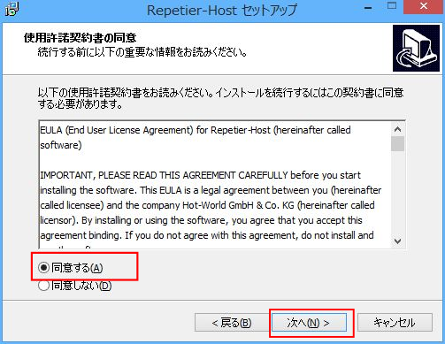 Repetier-Hostのインストール1(ダウンロード編)でダウンロードしたインストーラーを実行します。