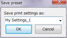 保存をすると、Print Settings タブ内の設定項目の値が保存されます。