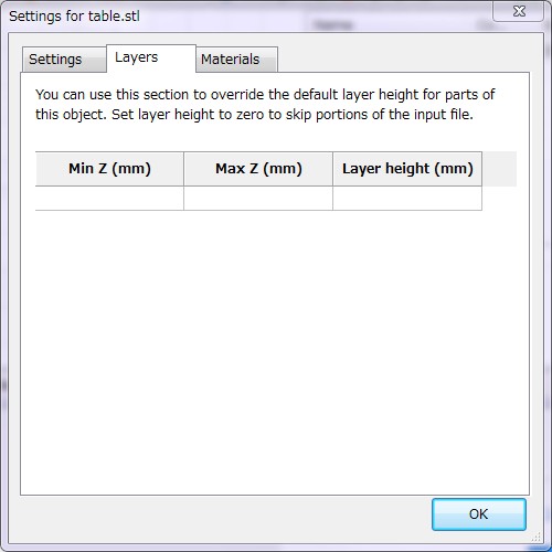 Slic3r | PlaterタブSettings>Layers / 各層固有の設定