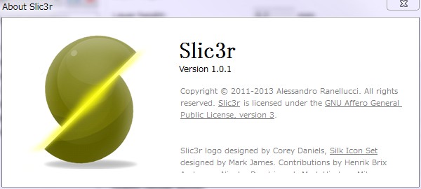 Repetier-HostからSlic3rを呼び出し、[Help >About Slic3r] でバージョンを確認します。