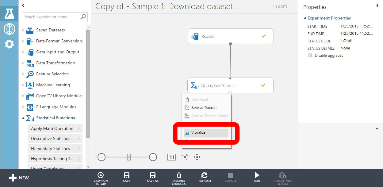 下の赤い資格の部分で右クリックをすると「Visualize」が表示された。