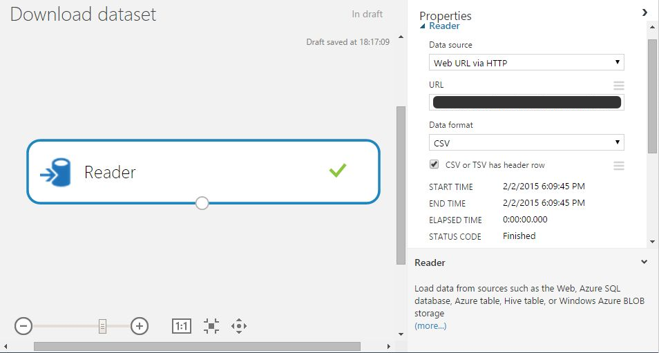 Data Input and Output > Reader をキャンバスに配置する。