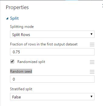 Fraction of rows in the first output datasetを0.75に設定して、75%を学習用、25%を試験用にします。