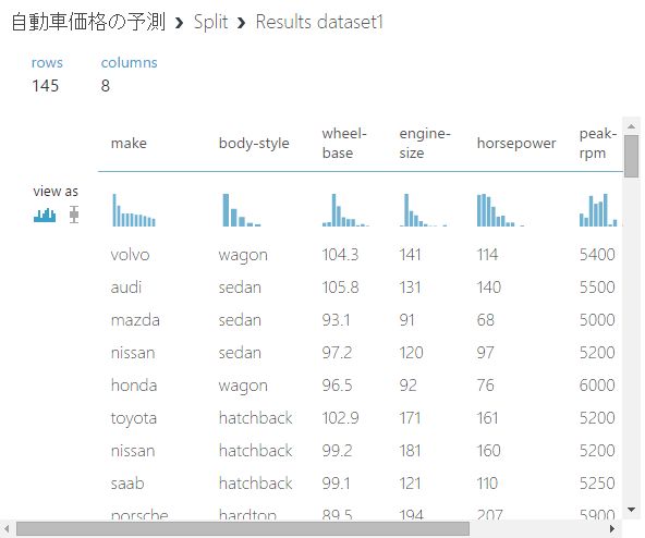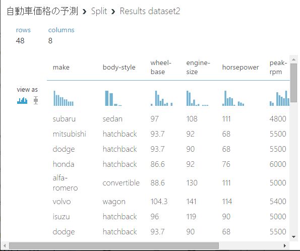 Splitの出力結果を確認します。SplitにはDataSet1とDataSet2の出力ポートがありますので、両方見てみます。