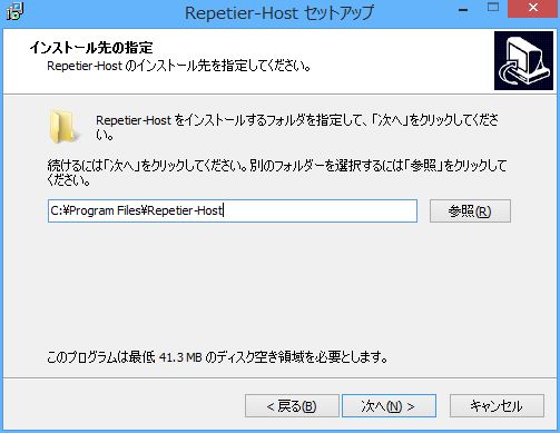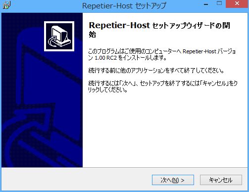 Repetier-Hostのインストール1(ダウンロード編)でダウンロードしたインストーラーを実行します。