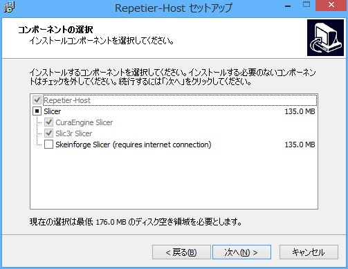 「次へ(N)>」ボタンを押すと、インストールするスライサーの選択画面が表示されます。