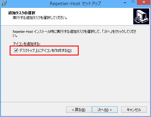 次の画面では、デスクトップへのシュートカット作成を選択します。