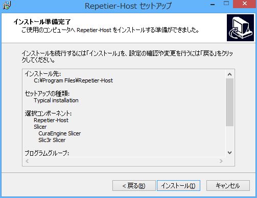 Repetier-Hostを実行するにチェック✔が入っていると、「完了(F)」ボタンを押した後、Repetier-Hostが立ち上がります。