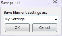 Slic3r | Save / フィラメント条件設定の保存/呼び出し