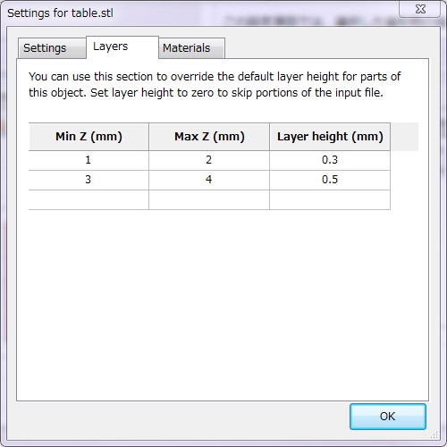 Slic3r | PlaterタブSettings>Layers / 各層固有の設定